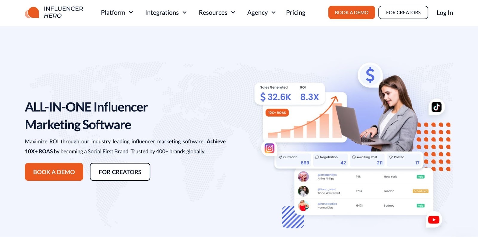 Influencer Hero is an all-in-one influencer marketing solution that combines search, outreach, tracking, and payments into one system. It’s known for its accessibility and straightforward design.